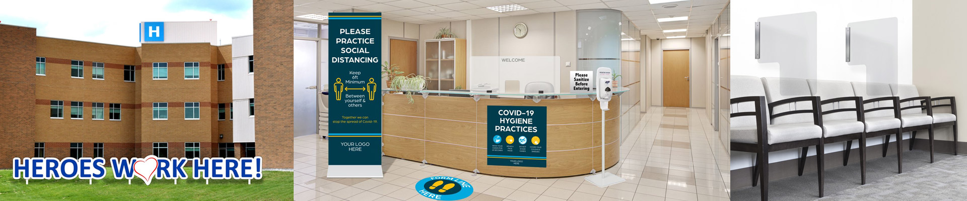 Whether it’s adding protection barriers to check-in counters, promoting social distancing with floor graphics, or changing waiting room traffic flow, signs are a critical part of helping staff and patients understand and remember what they need to do to maintain a safe environment.