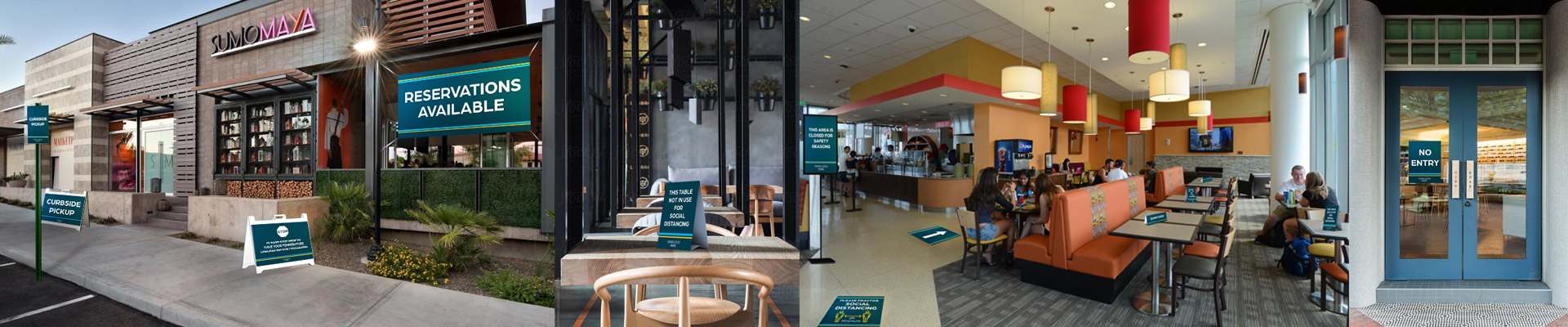 Whether it’s adding protection barriers to hostess counters, promoting social distancing with floor graphics, or tracking which tables have been sanitized and ready for guests, signs are a critical part of helping everyone understand and remember what they need to do to maintain a safe environment.