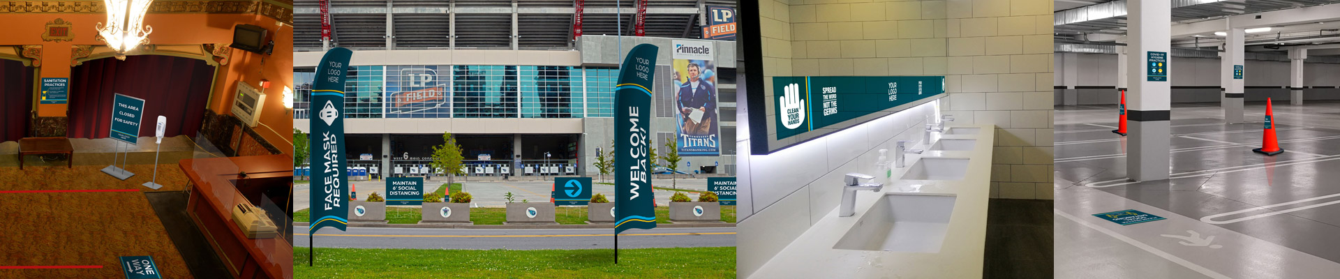 Whether it’s adding protection barriers to ticket counters, promoting social distancing with floor graphics, or sharing new concession practices, signs are a critical part of helping everyone understand and remember what they need to do to maintain a safe environment.
