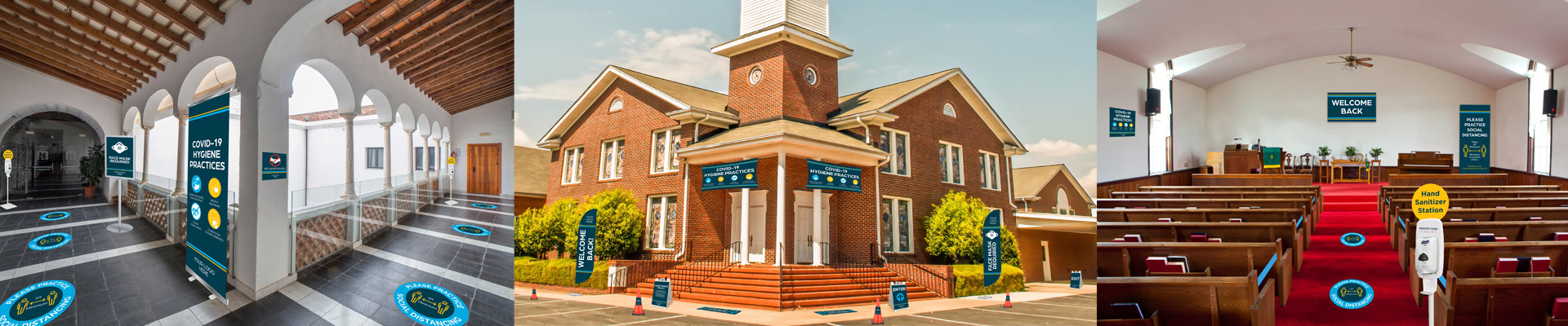 Whether it’s promoting social distancing with floor graphics or sharing new practices for offerings or communion, signs are a critical part of helping everyone understand and remember what they need to do to maintain a safe environment.